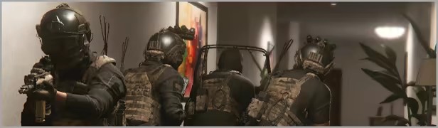 门是你的生命线,也是你的屏障。潜入时要小心,因为恐怖分子会设置陷阱和警报。进攻方还有 4 种突破选项:踢门,撞门锤,C2 炸药和踹门丢手榴弹,让玩家在突入生死攸关的入口时可以采取多种多样的策略。”